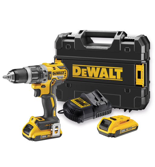 • 18V XR Li-Ion compact hammer drill driver featuring 2.0Ah XR Li-Ion battery technology