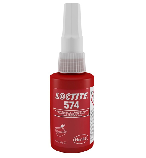 LOCTITE® 574 seals close-fitting joints between rigid metal faces and flanges. The product cures when confined in the absence of air between close-fitting metal surfaces. It provides resistance to low pressures immediately after assembly. Typically used as a form-in-place gasket on rigid flanged connections. The nature of LOCTITE 574 reduces the migration of liquid product after application to the substrate. It has a high oil tolerance and excellent water and glycol resistance.