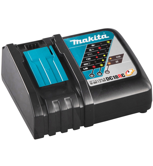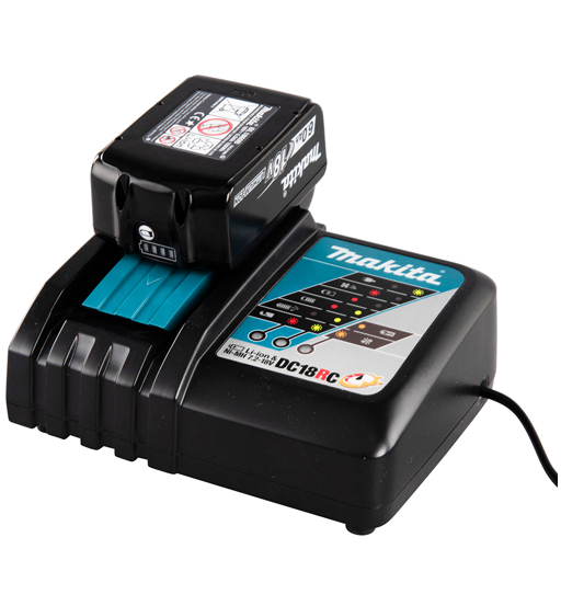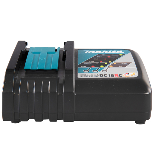 Rapid charger for 14.4V and 18V LXT slide-style batteries. Equipped with a cooling fan that cools the battery to enable faster charging. Charging optimized in terms of voltage, current and temperature. Charges a battery in 15-55 minutes, depending on the battery’s capacity.