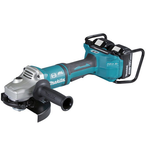 Battery powered Angle Grinder for professionals. Two 18V LXT Li-ion batteries deliver the power and performance for corded demands without leaving the 18V LXT platform. Easy-to-grip, ergonomically designed handle with soft grip provides a sure and comfortable grip. Includes 2 x 5, 0 Ah batteries and a two port charger.