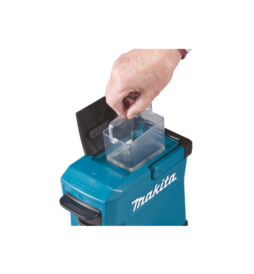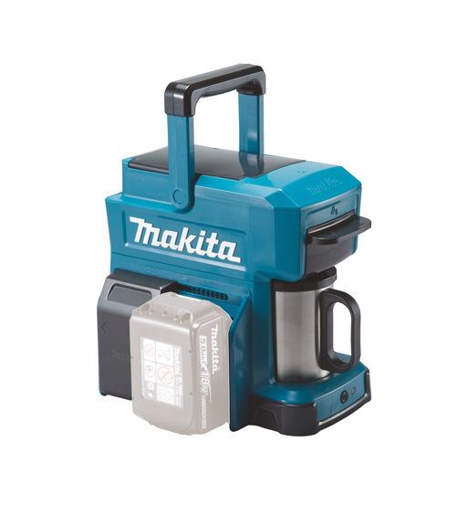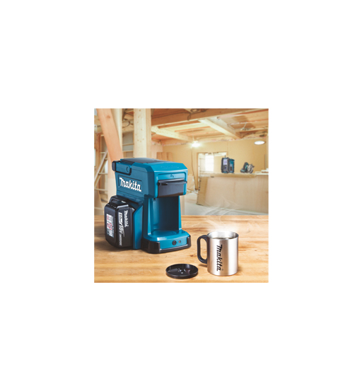 This battery-powered coffee maker brews a tasty cup of coffee on site. A 240 ml water tank and a specialized cup that fits in the machine. A 100 ml cup with a 1.0Ah battery, power switches off automatically. Mug and measurement spoon included. Tool only, battery and charger not included.