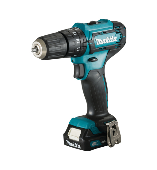 A lightweight drill for screw driving and drilling with or without hammer action, two power settings. Maximum torque of 30 / 14 Nm. A versatile tool for fitters, builders and maintenance staff. Integrated LED light. Two 2, 0 Ah batteries and a charger in a case.