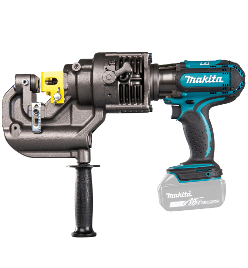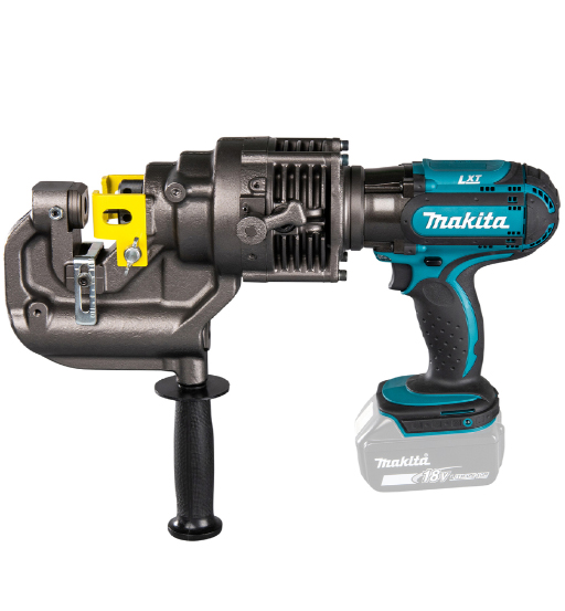 A punch with which you can quickly and safely make holes up to 20 mm in diameter in metal up to 8 mm thick. Depending on the punch to be selected, either round or oval holes.